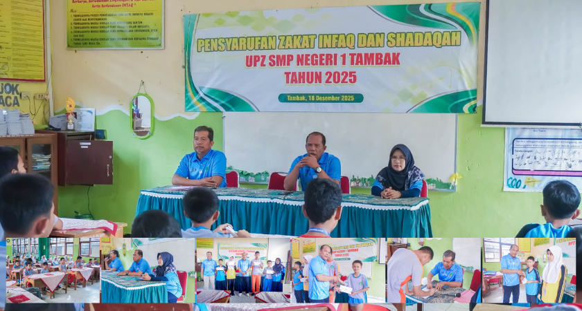 Suasana penuh kepedulian terasa di SMP Negeri 1 Tambak pada Selasa, 6 Januari 2026, saat dilaksanakan kegiatan Pentasyarufan Baznas yang melibatkan Kepala Sekolah, Unit Pengumpul Zakat